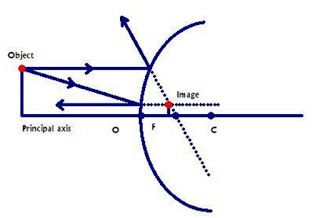 Image Formation By Concave Mirror And Their Ray Diagrams. When the object is kept at infinity: As the parallel rays coming from the object converge at the principal focus, F of a concave mirror; after reflection through it. Therefore, when the object is at infinity the image will form at F. Object at Infinity.