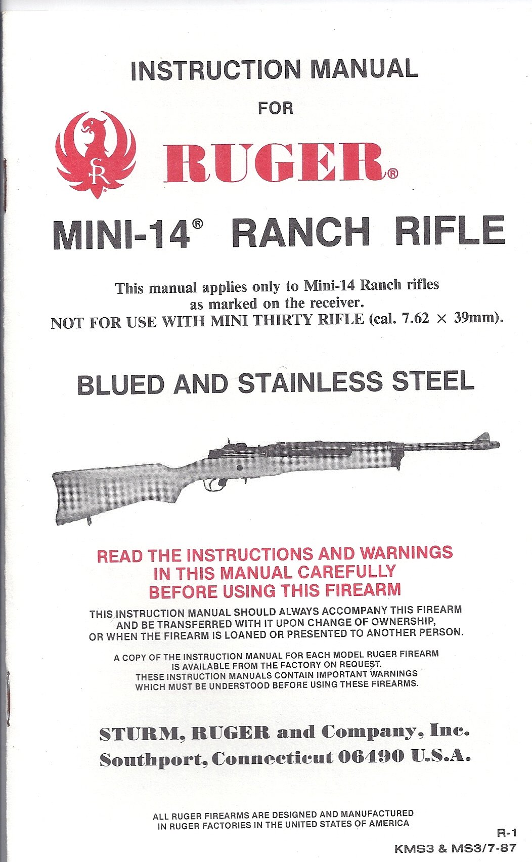 Ruger MINI-14 User Manual. Ruger Sports and recreation. STURM, RUGER & C o m p a n y, Inc. S o u t h p o rt, Connecticut 06890 U.S.A. This instruction manual should a lways a C C o M pa n y this firearm and be.