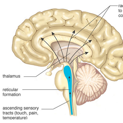The reticular formation is the powerhouse portion of the brain, mostly found in the brain stem. There are multiple clusters of nuclei, each responsible for different things. The reticular formation is the primary regulator of arousal and consciousness. During sleep, the center normally suppresses the individual’s level of consciousness. Efferent fibers from the reticular formation can convey sensory information to the cortex of a sleeping individual, which would awaken that person.