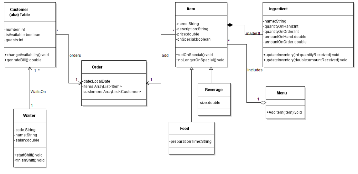 Design a Restaurant Management System - GitHub Use Case Diagram; Class Diagram; Activity Diagrams; Code; A Restaurant Management System is a software built to handle all restaurant activities in an easy and safe manner. This System will give the Restaurant management power and flexibility to manage the entire system from a single portal. Class Diagram for restaurant management with System Status ... Download scientific diagram | Class Diagram for restaurant management with System Status Feedback feature from publication: A Glass Box Design: Making the Impact of Usability on Software ...