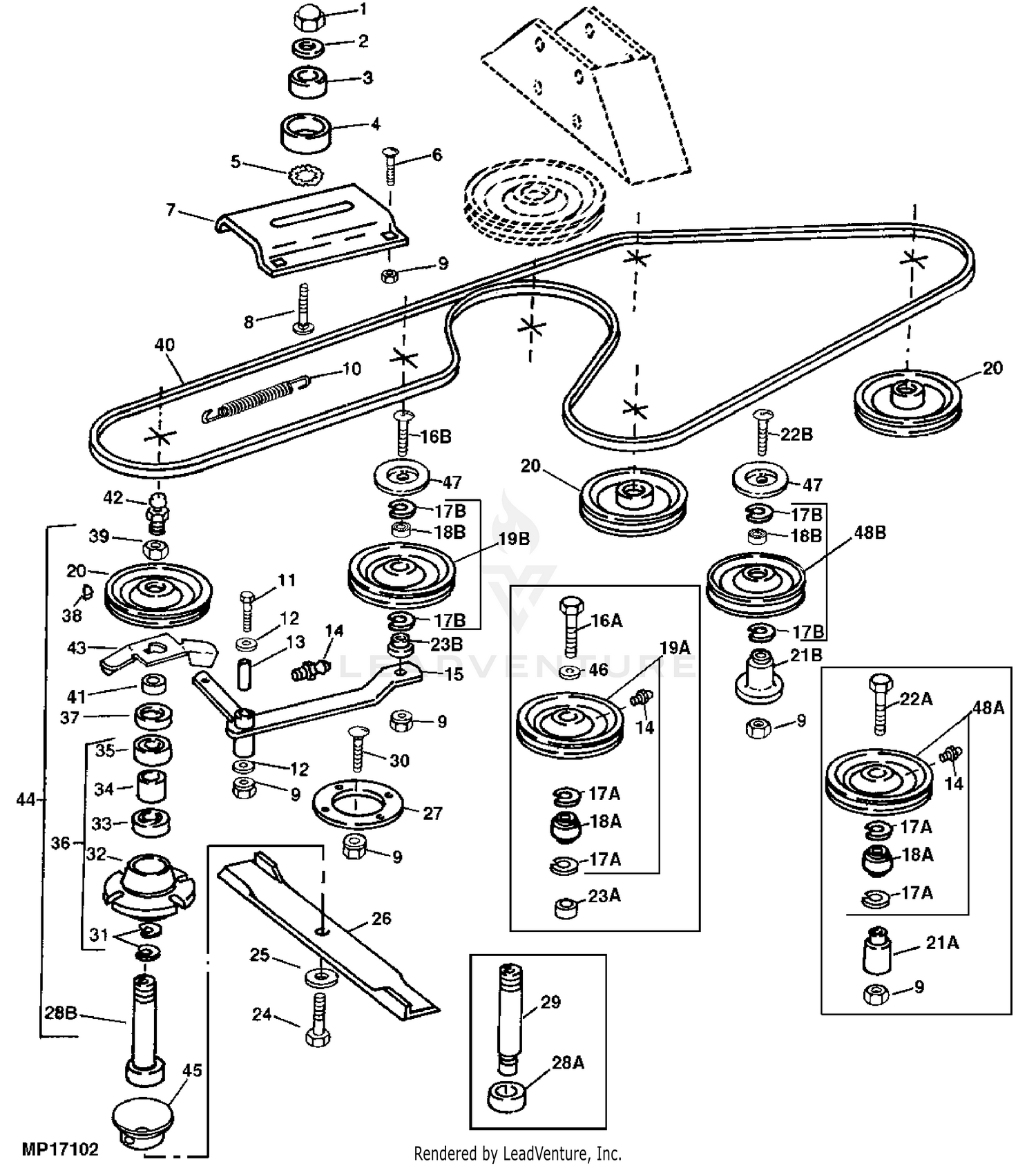 40 john deere 214 deck belt diagram
