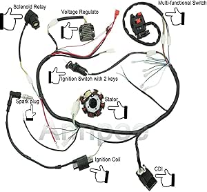 GOOFIT Full Electrics Wiring Harness Coil Rectifier CDI Solenoid Spark Plug Replacement For 50cc 125cc ATV Quad Pit Dirt Bike Buggy Go Kart