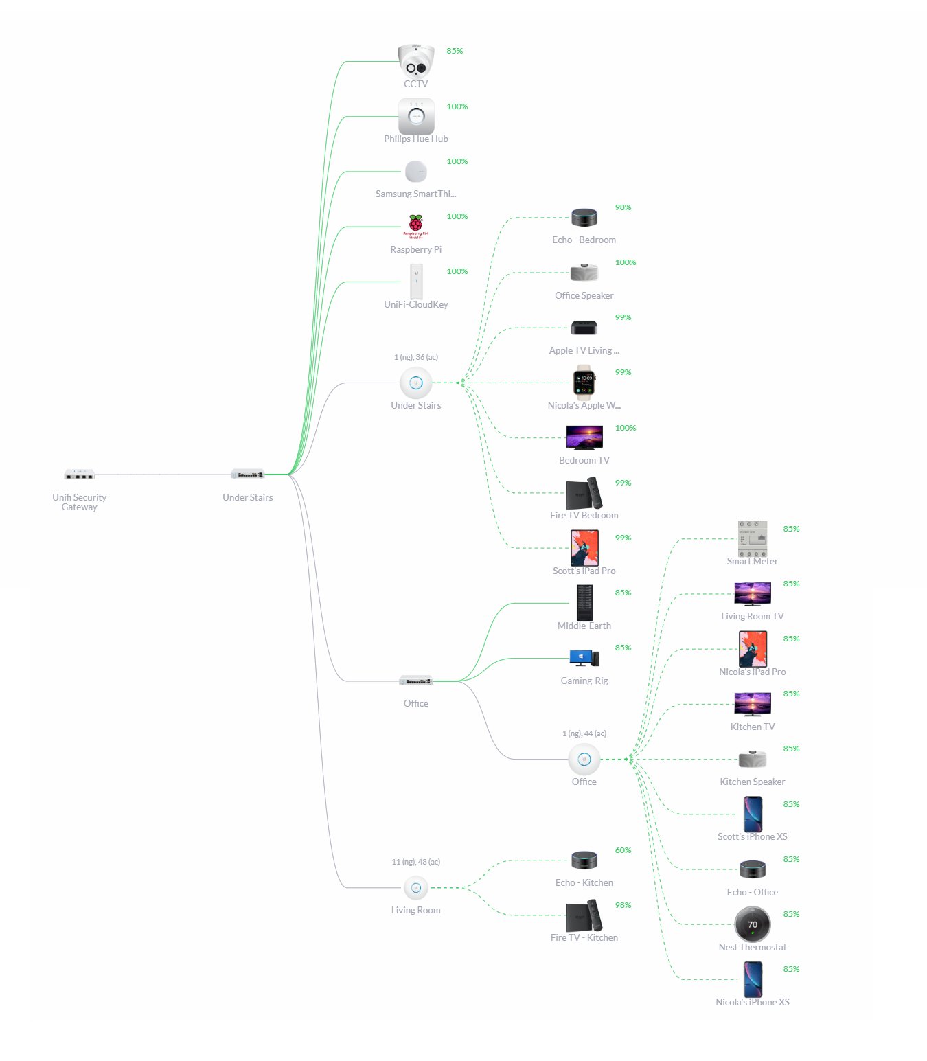 Network Diagram — Fing Community Ubiquiti's Unifi excellent site management tool offers a topology diagram. You can also upload floorplans to said tool and place your devices thereon. Lee_Bo Member Posts: 272 August 17, 2020 edited August 17, 2020 #19 Network diagram would be nice, like what Ubiquiti does, but that requires programming.