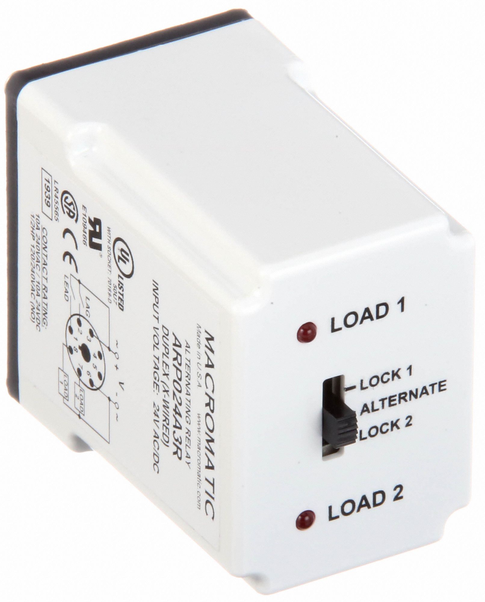 PDF December 2020, Rev D 901-0000-323 - Macromatic Normally this means a jumper wire was placed between pins 1 & 2. Whenever the LEAD switch is closed, voltage is then brought to Pin 2, which mimics the closure of the LAG switch and turns on Load 2. Remove the jumper wire between pins 1 & 2. Connect the LEAD and LAG switches as shown on the wiring diagrams above. Catalog Number ARF012A3R ARF024A3R